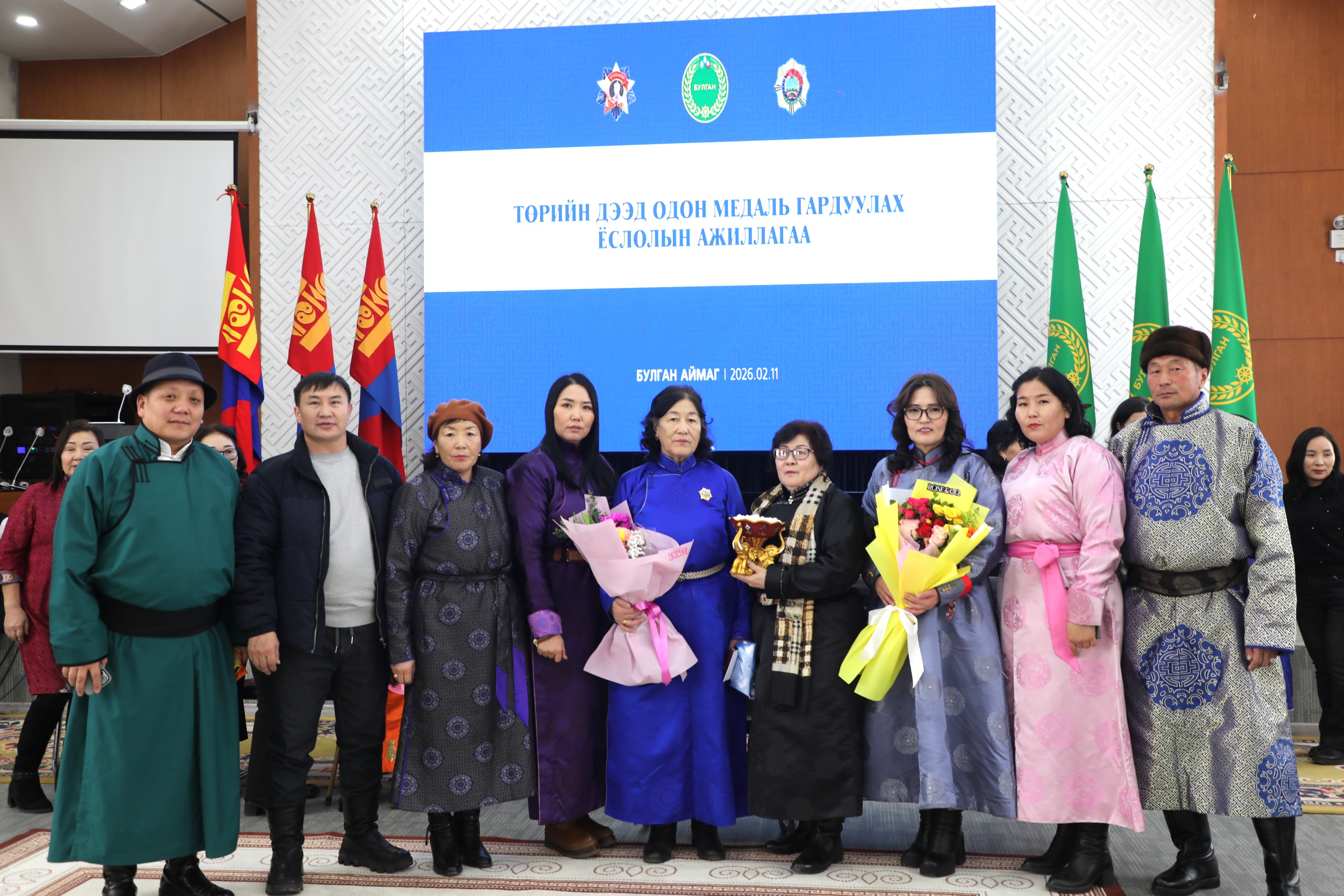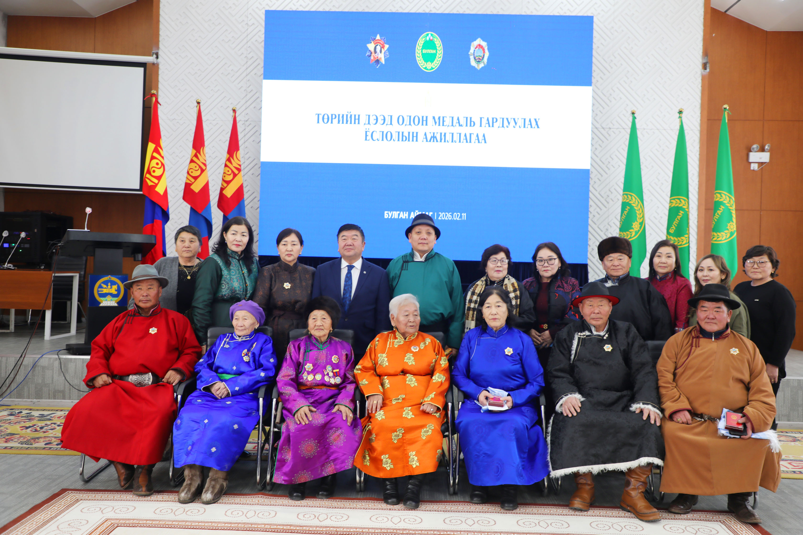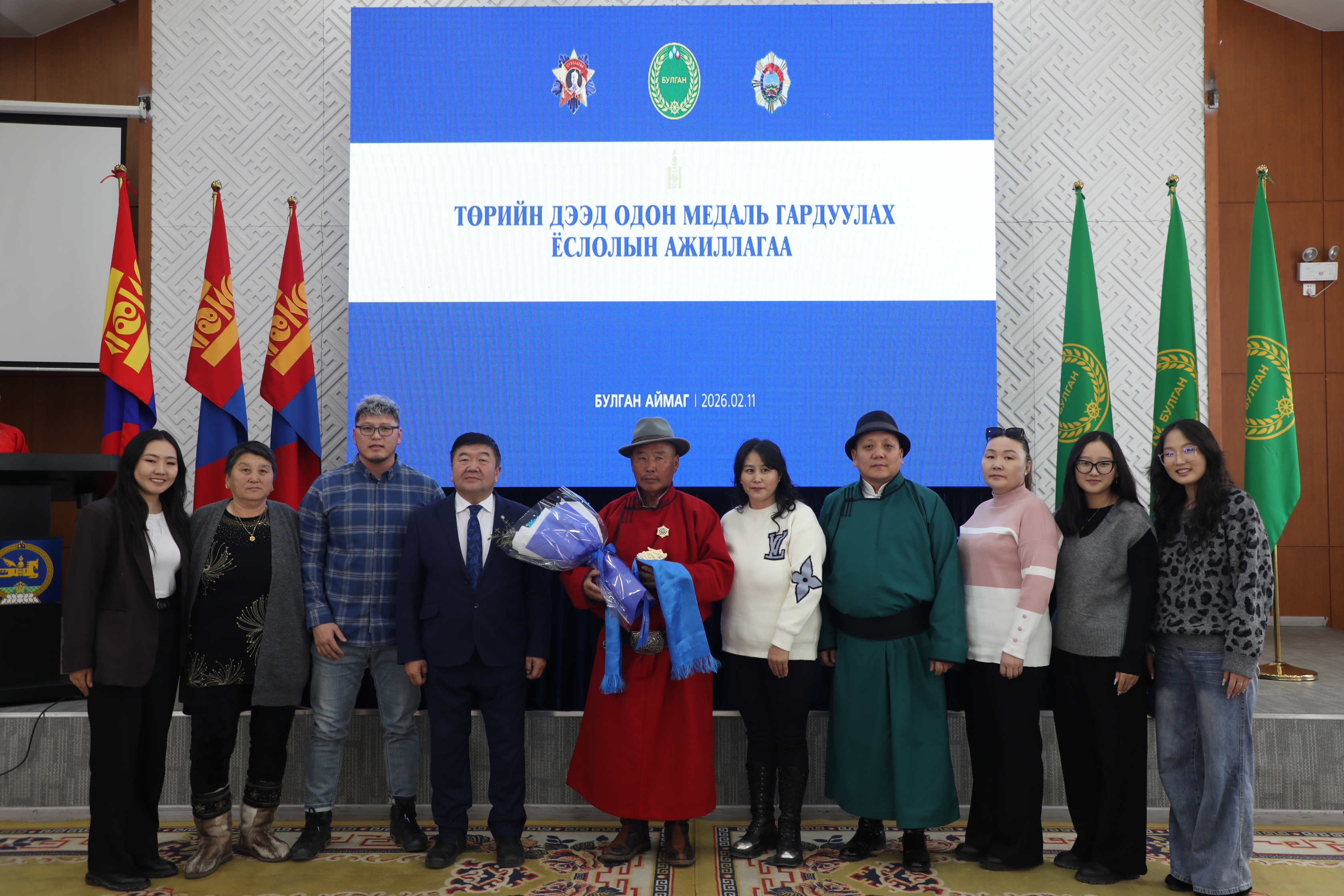 Тулгар төрийн 2234 жил, Их Монгол Улс байгуулагдсаны 819 жил, Үндэсний эрх чөлөө, тусгаар тогтнолоо сэргээн мандуулсны 114 жил, Ардын хувьсгалын 104 жилийн ойг тохиолдуулан боловсрол, соёл урлаг, эрүүл мэнд, мал аж ахуй, төрийн байгууллагад олон жил үр бүтээлтэй ажилласан дараах нэр бүхий хүмүүсийг төрийн дээд одон медалиар шагналаа.