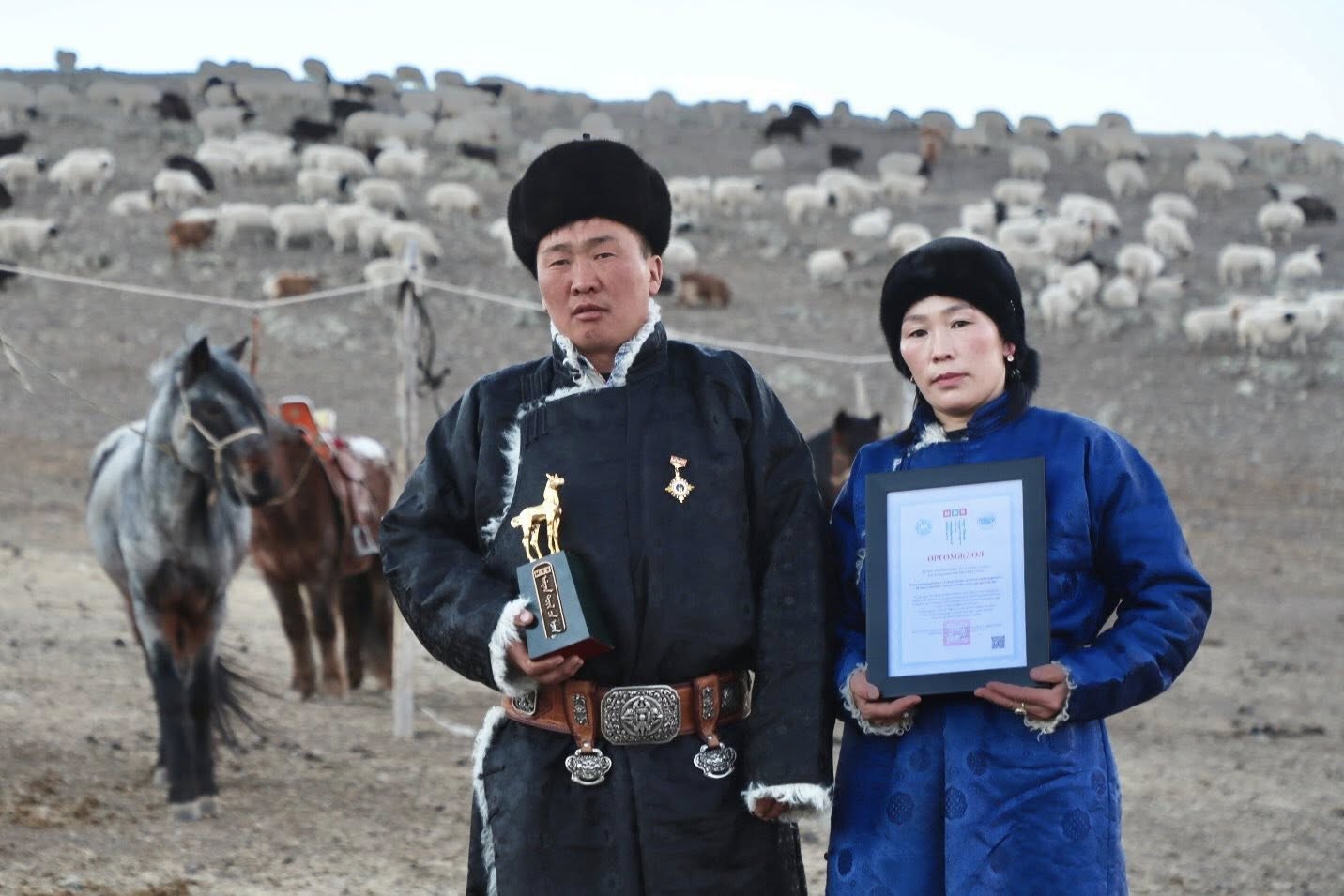 Булган аймгийн Баян-Агт сумын Шарга багийн малчин Бат-Очирын Мөнхбат, гэргий Сандагийн Буянцэцэг нар малчин түмнээ алдаршуулдаг эрхэм хүндтэй шагнал болох "Алтан унага"-ны эзнээр шалгарч, шагналаа өнөөдөр гардан авлаа.